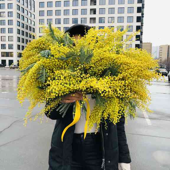 гигантский букет, в который вложено много любви. Сиреневый оттенок в дуэте с оттенком цветочного мёда, окутают своей нежностью, а манящий запах эвкалипта, не оставит равнодушным каждого