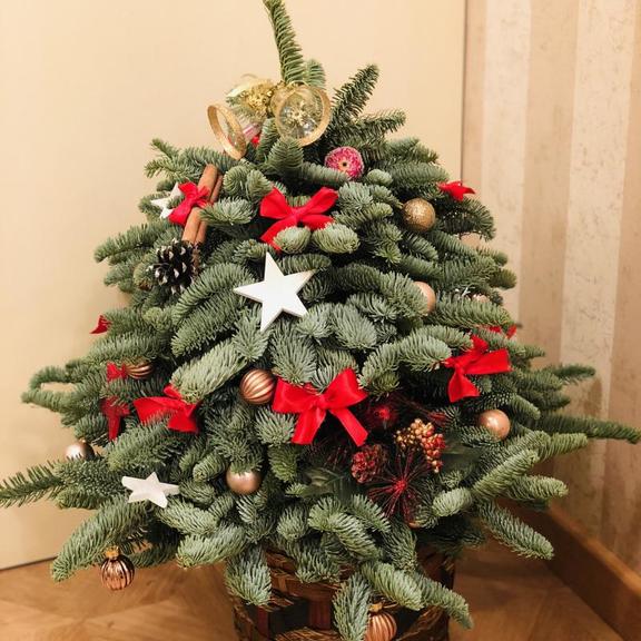 веточки сосны подарят свой неповторимый аромат вашему дому, красивый декор сделает композицию по-настоящему новогодней , а ваза в современном стиле добавит изюминку вашему интерьеру