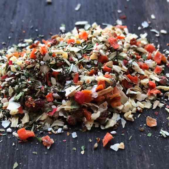 универсальная приправа из сушеных овощей, подходит для вареных, тушеных и жареных блюд.